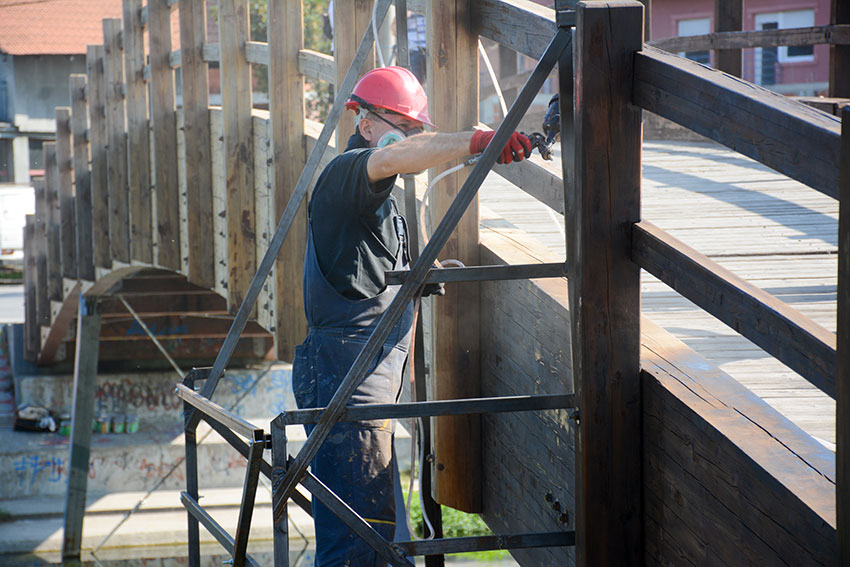 Боја је са моста поптпуно састругана, након фарбања биће премазан и заштитини слој,