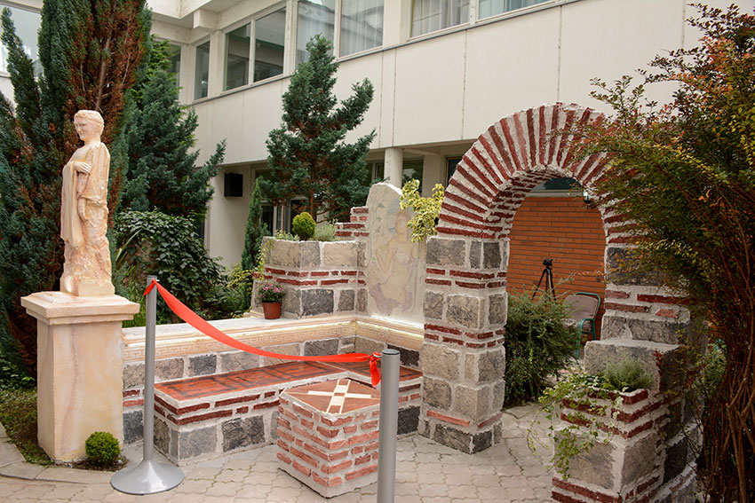 Простор је рађен са мотивима Феликс Ромулијана и оплемењен биљкама, а дело је уметника Саше Тодоровића.