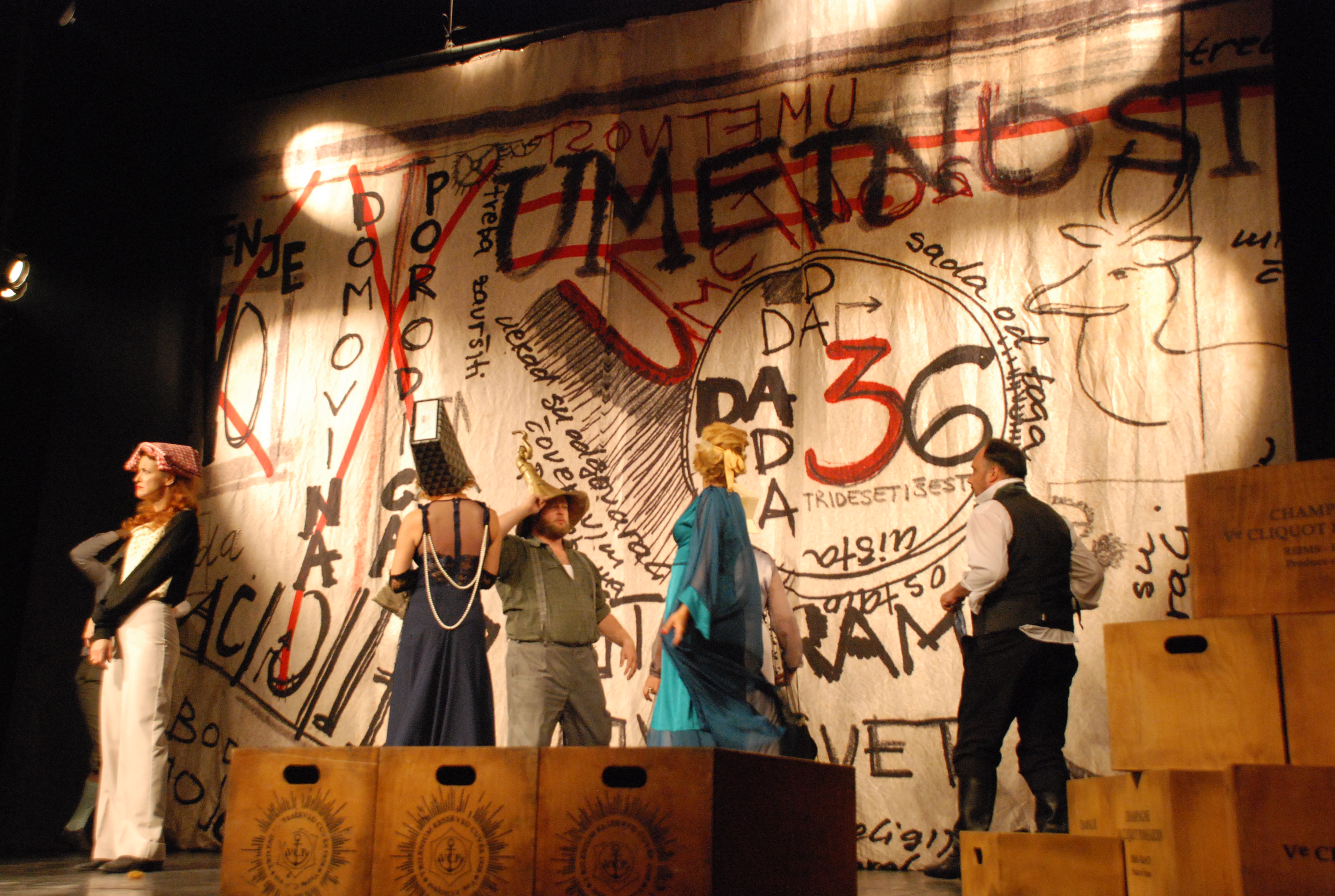 У представи улоге тумачи десет глумаца, који су одушевили зајечарску публику. Играју: Ненад Ћирић, Јелена Ђокић, Јелена Петровић, Урош Јаковљевић, Гордан Кичић, Горица Поповић, Јелена Ступљанин, Бојан Жировић, Тамара Драгичевић и Стефан Бундало. Сценограф је Валентина Попржан, а костимограф Драгана Лађевац Бркић.