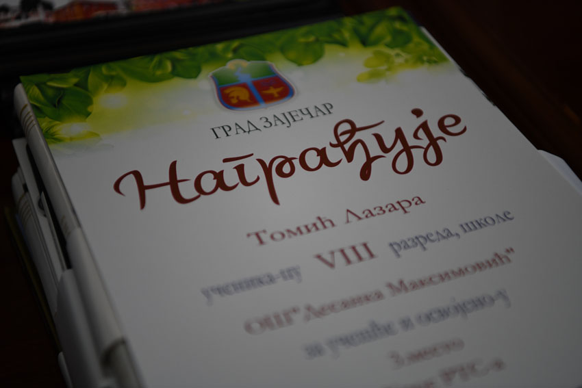 У великој сали Скупштине града Зајечара уприличен је пријем и додела Вукових диплома и награда најбољим зајечарским ученицима. Награде и дипломе је уручио заменик градоначелник др Владимир Виденовић уз жеље да следеће године буде још већи број награђених ученика.