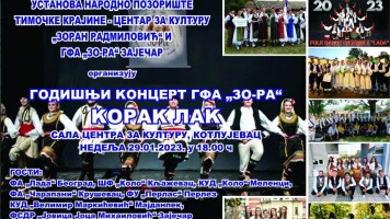 ВишеУ недељу 29. јануара у 18.00х, у сали Центра за културу у Котлујевцу, биће одржан годишњи концерт Градског фолклорног ансамбла "ЗО-РА", под називом "Корак лак".